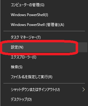 デスクトップ左下のwindowsマークを右クリックして「設定」