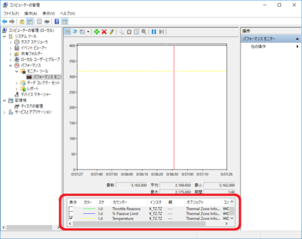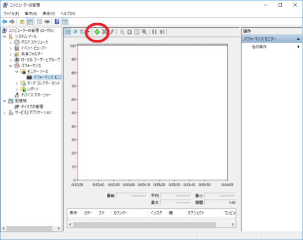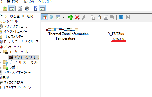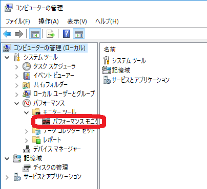 「パフォーマンス モニタ」が開きますが、ここから先はCPU温度を表示するようにカスタマイズしないといけません。
